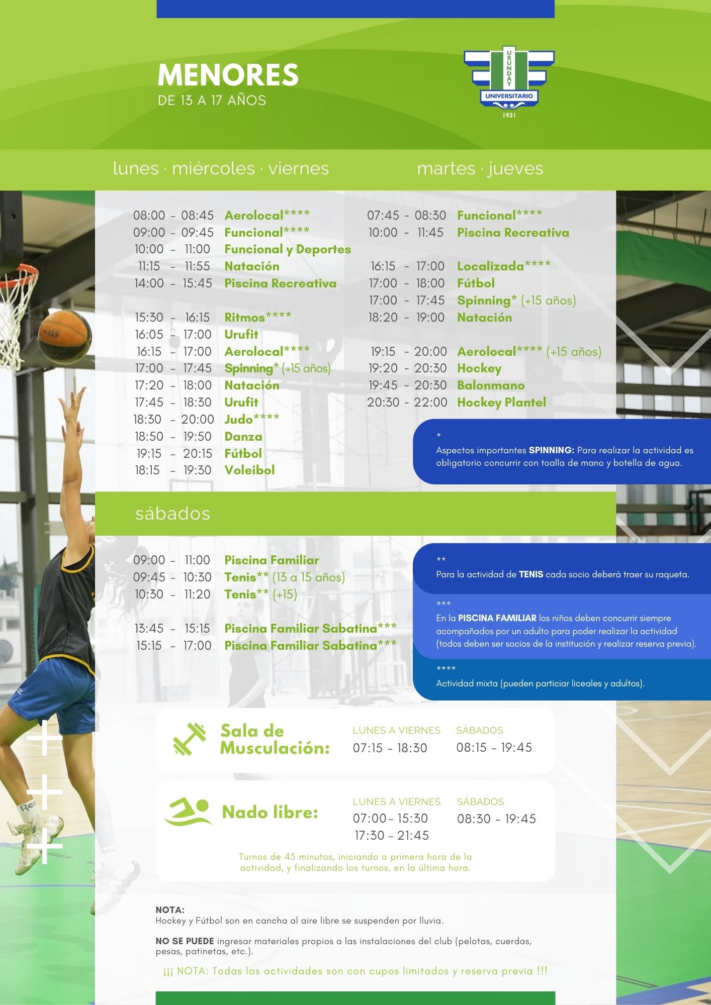 Si queres refinar tu búsqueda podes usar las opciones de día de semana y selección por actividad: