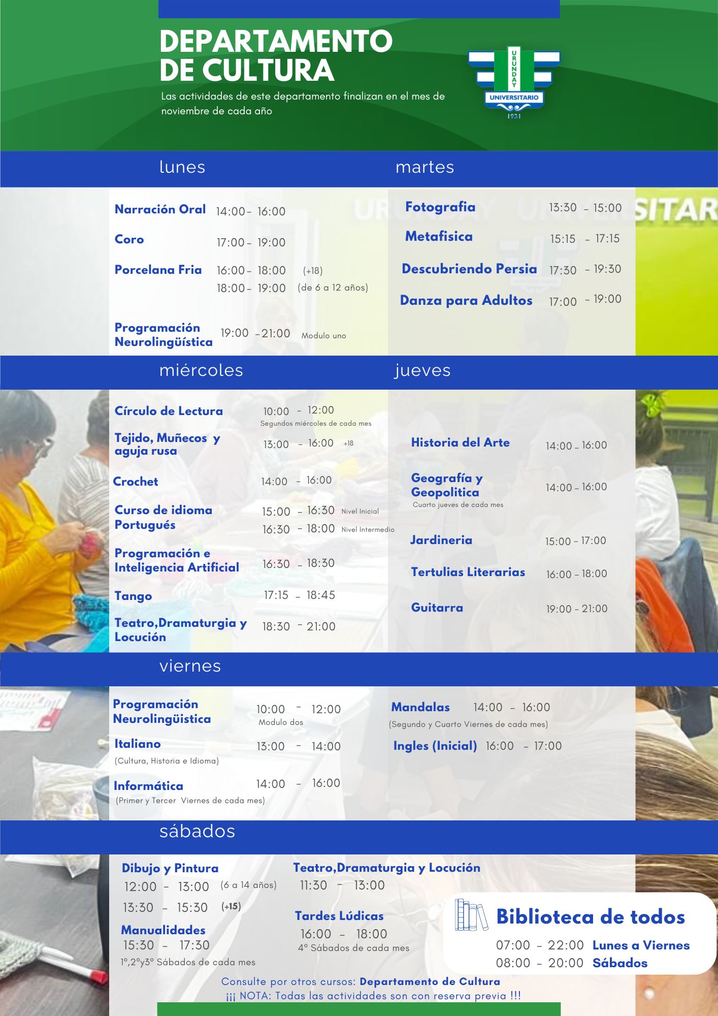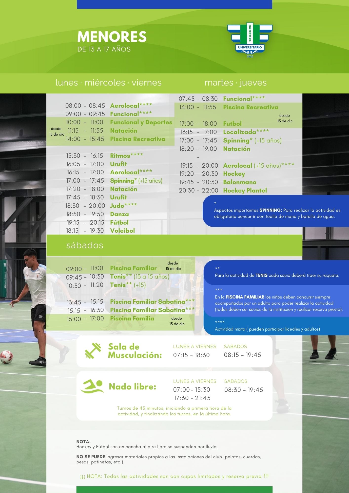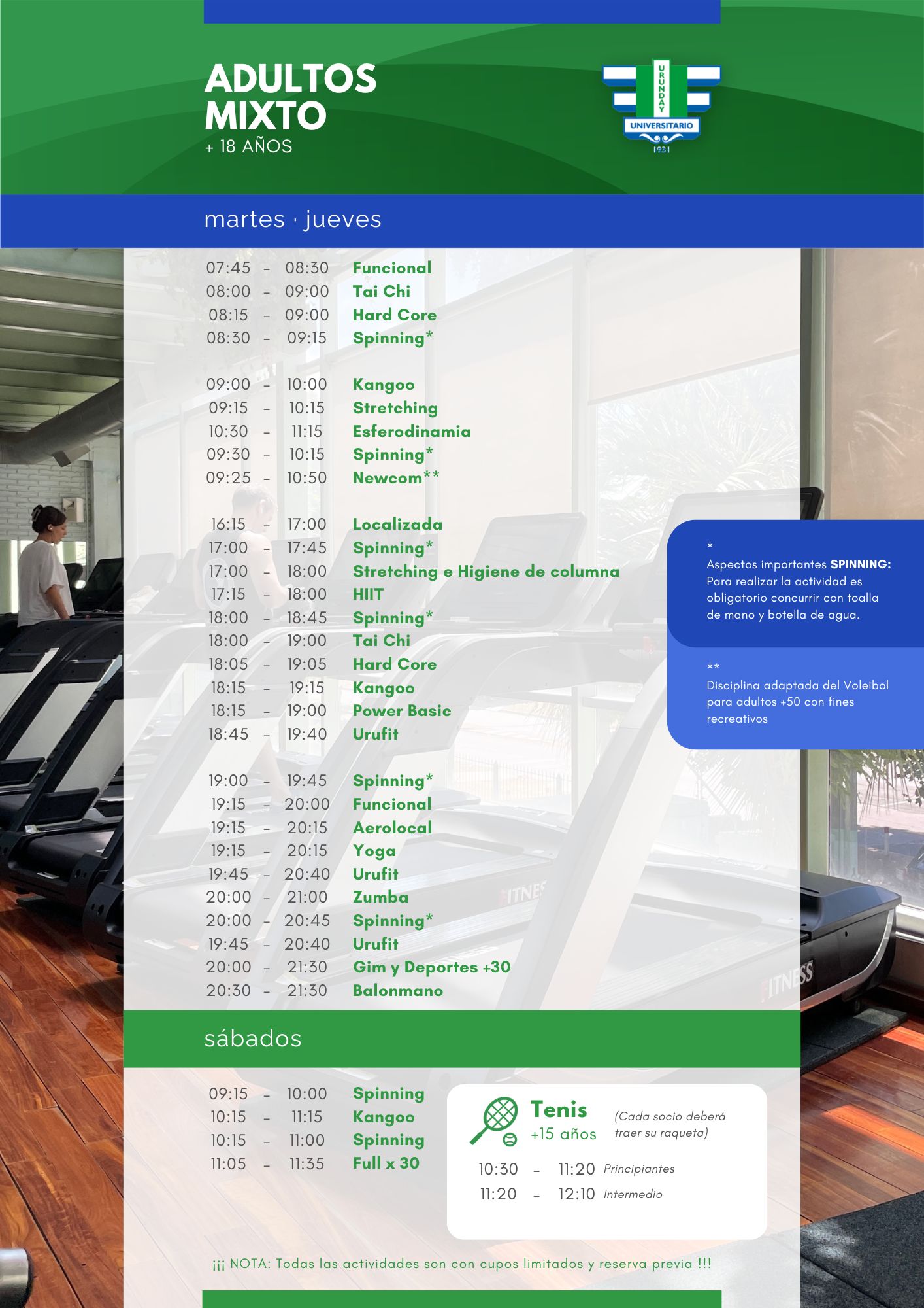 Si queres refinar tu búsqueda podes usar las opciones de día de semana y selección por actividad: